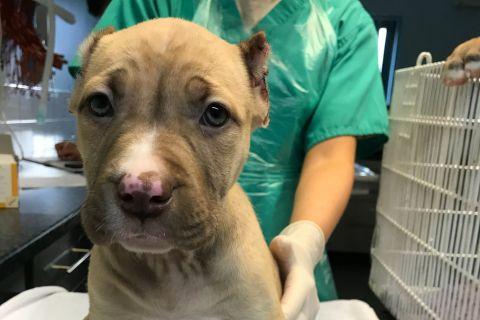 In 2020, we rescued six bully-type puppies after the police attended an incident the night before. The puppies were discovered in the middle of having their ears illegally cropped.